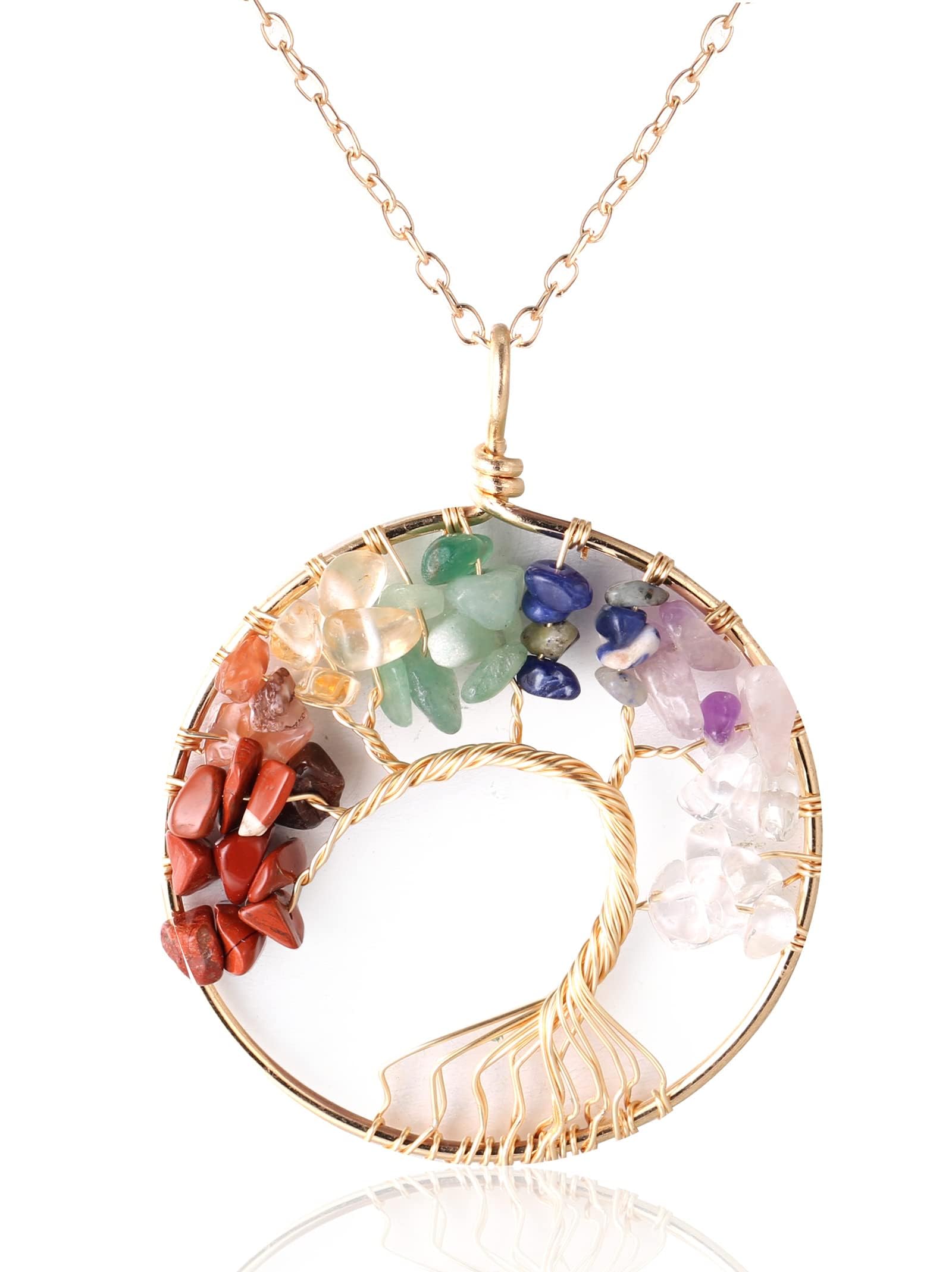 √ PURELY HANDMADE - Hand-wrapped Copper Wire Tree of Life Winding,Hand-Set Crystal Gemstone Pendant,Blessed in Singing Bowl One By One.Since it is all about natural material,each and every one is slightly unique in terms of shape, color and size.